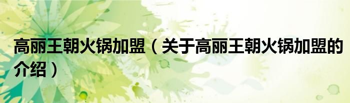 大家好,今天小乐来为大家解答以上的问题。高丽王朝火锅加盟,关于高丽王朝火锅加盟的介绍很多人还不知道,现在让我们一起来看看吧!