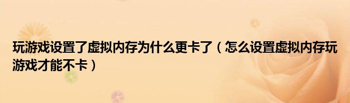关于玩游戏设置了虚拟内存为什么更卡了,怎么设置虚拟内存玩游戏才能不卡这个很多人还不知道,今天菲菲来为大家解答以上的问题,现在让我们一起来看看吧!