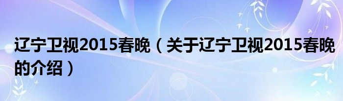大家好,今天小乐来为大家解答以上的问题。辽宁卫视2015春晚,关于辽宁卫视2015春晚的介绍很多人还不知道,现在让我们一起来看看吧!