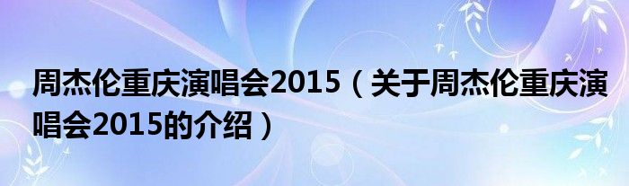 周杰伦重庆演唱会2015(关于周杰伦重庆演唱会2015的介绍)