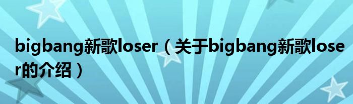 bigbang新歌loser(关于bigbang新歌loser的介绍)