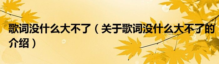 大家好,今天小乐来为大家解答以上的问题。歌词没什么大不了,关于歌词没什么大不了的介绍很多人还不知道,现在让我们一起来看看吧!