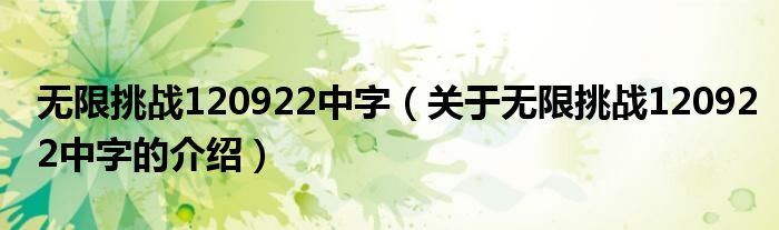 大家好,今天小乐来为大家解答以上的问题。无限挑战120922中字,关于无限挑战120922中字的介绍很多人还不知道,现在让我们一起来看看吧!