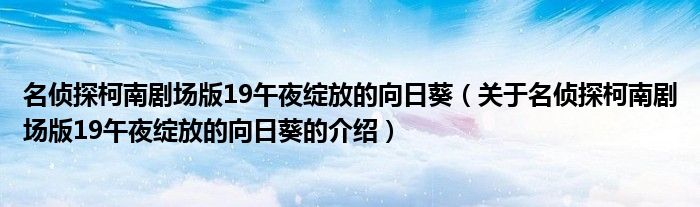 名侦探柯南剧场版19午夜绽放的向日葵(关于名侦探柯南剧场版19午夜绽放的向日葵的介绍)