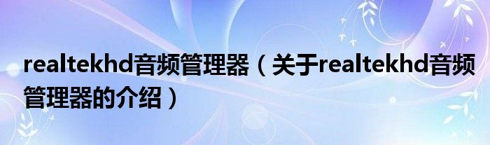大家好,今天小乐来为大家解答以上的问题。realtekhd音频管理器,关于realtekhd音频管理器的介绍很多人还不知道,现在让我们一起来看看吧!