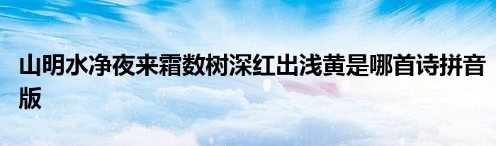 关于山明水净夜来霜数树深红出浅黄是哪首诗拼音版这个很多人还不知道,今天菲菲来为大家解答以上的问题,现在让我们一起来看看吧!