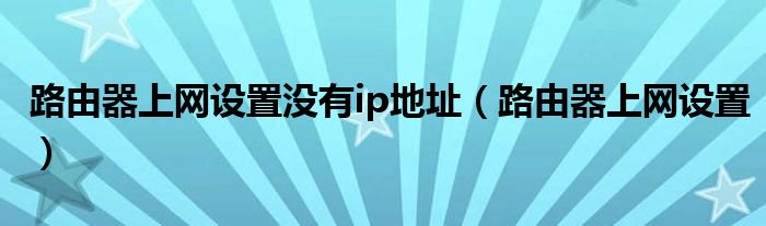 路由器上网设置没有ip地址(路由器上网设置)