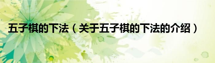 大家好,小都来为大家解答以上的问题。五子棋的下法,关于五子棋的下法的介绍很多人还不知道,现在让我们一起来看看吧!