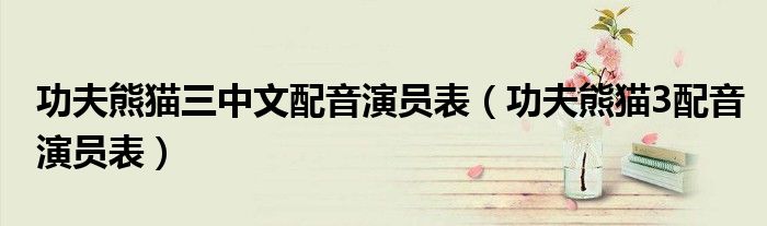 关于功夫熊猫三中文配音演员表,功夫熊猫3配音演员表这个很多人还不知道,今天菲菲来为大家解答以上的问题,现在让我们一起来看看吧!