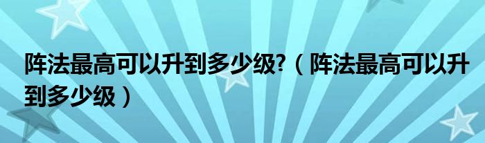 阵法最高可以升到多少级?(阵法最高可以升到多少级)