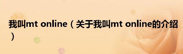 大家好,小都来为大家解答以上的问题。我叫mt online,关于我叫mt online的介绍很多人还不知道,现在让我们一起来看看吧!