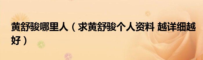 关于黄舒骏哪里人,求黄舒骏个人资料 越详细越好这个很多人还不知道,今天菲菲来为大家解答以上的问题,现在让我们一起来看看吧!