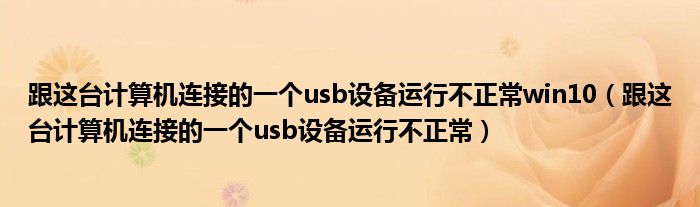跟这台计算机连接的一个usb设备运行不正常win10(跟这台计算机连接的一个usb设备运行不正常)