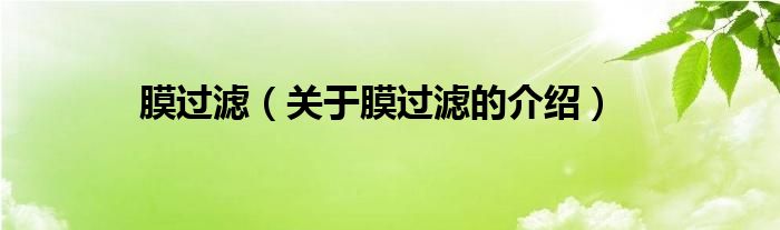 大家好,小都来为大家解答以上的问题。膜过滤,关于膜过滤的介绍很多人还不知道,现在让我们一起来看看吧!