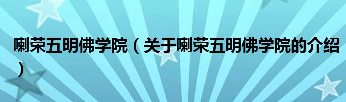 大家好,小都来为大家解答以上的问题。喇荣五明佛学院,关于喇荣五明佛学院的介绍很多人还不知道,现在让我们一起来看看吧!