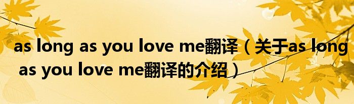 大家好,小都来为大家解答以上的问题。as long as you love me翻译,关于as long as you love me翻译的介绍很多人还不知道,现在让我们一起来看看吧!