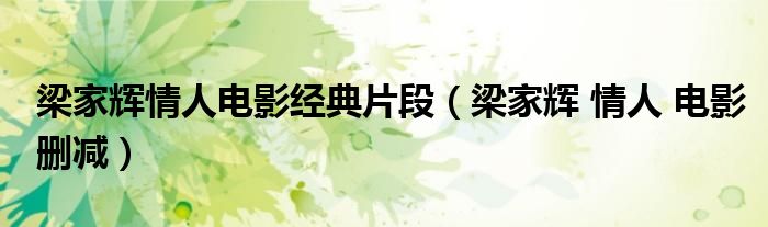 梁家辉情人电影经典片段(梁家辉情人电影删减)