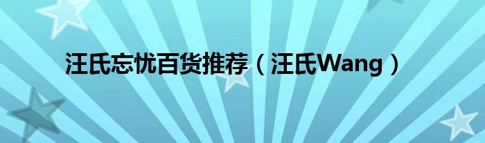 大家好,小源来为大家解答以上问题。汪氏忘忧百货推荐,汪氏Wang很多人还不知道,现在让我们一起来看看吧!