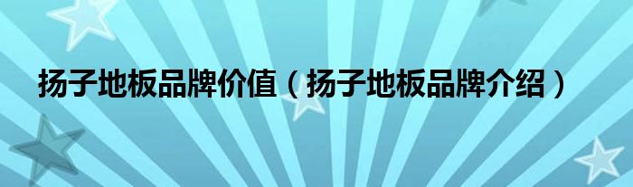 大家好,小源来为大家解答以上问题。扬子地板品牌价值,扬子地板品牌介绍很多人还不知道,现在让我们一起来看看吧!