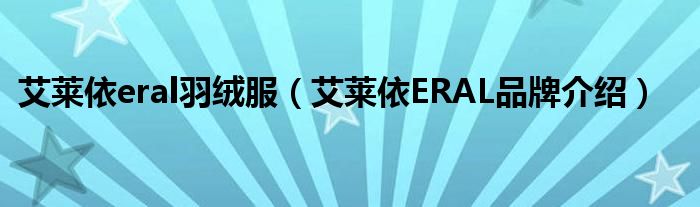 大家好,小源来为大家解答以上问题。艾莱依eral羽绒服,艾莱依ERAL品牌介绍很多人还不知道,现在让我们一起来看看吧!