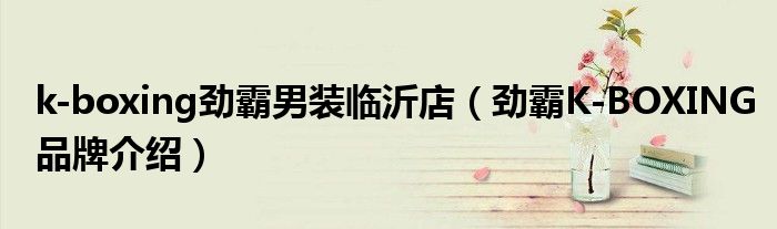 大家好,小源来为大家解答以上问题。k-boxing劲霸男装临沂店,劲霸K-BOXING品牌介绍很多人还不知道,现在让我们一起来看看吧!