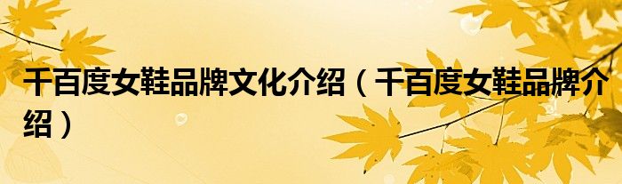 大家好,小源来为大家解答以上问题。千百度女鞋品牌文化介绍,千百度女鞋品牌介绍很多人还不知道,现在让我们一起来看看吧!
