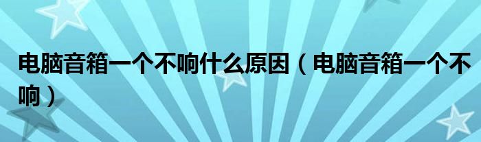 电脑音箱一个不响什么原因,电脑音箱一个不响很多人还不知道,乐乐来为大家解答以上问题,现在让我们一起来看看吧!