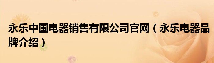 大家好,小源来为大家解答以上问题。永乐中国电器销售有限公司官网,永乐电器品牌介绍很多人还不知道,现在让我们一起来看看吧!