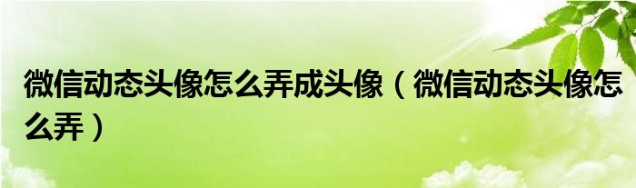 微信动态头像怎么弄成头像(微信动态头像怎么弄)