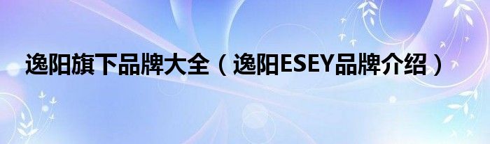 大家好,小源来为大家解答以上问题。逸阳旗下品牌大全,逸阳ESEY品牌介绍很多人还不知道,现在让我们一起来看看吧!