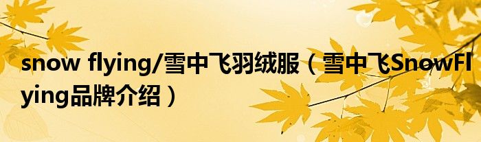 大家好,小源来为大家解答以上问题。snow flying/雪中飞羽绒服,雪中飞SnowFlying品牌介绍很多人还不知道,现在让我们一起来看看吧!