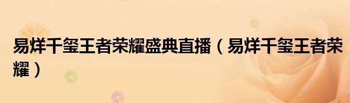 易烊千玺王者荣耀盛典直播,易烊千玺王者荣耀很多人还不知道,乐乐来为大家解答以上问题,现在让我们一起来看看吧!