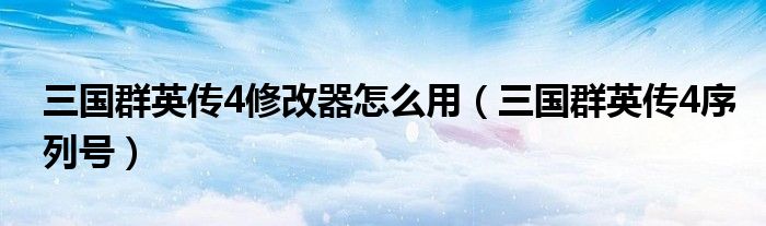 三国群英传4修改器怎么用,三国群英传4序列号这个很多人还不知道,小飞来为大家解答以上的问题。现在让我们一起来看看吧!