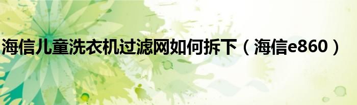 海信儿童洗衣机过滤网如何拆下,海信e860很多人还不知道,乐乐来为大家解答以上问题,现在让我们一起来看看吧!