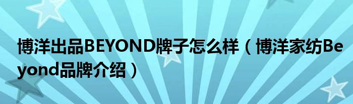 大家好,小源来为大家解答以上问题。博洋出品BEYOND牌子怎么样,博洋家纺Beyond品牌介绍很多人还不知道,现在让我们一起来看看吧!