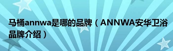 大家好,小源来为大家解答以上问题。马桶annwa是哪的品牌,ANNWA安华卫浴品牌介绍很多人还不知道,现在让我们一起来看看吧!
