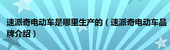 大家好,小源来为大家解答以上问题。速派奇电动车是哪里生产的,速派奇电动车品牌介绍很多人还不知道,现在让我们一起来看看吧!
