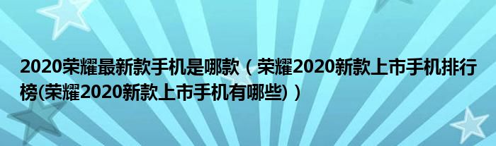 大家好,小常来为大家解答以上问题。2020荣耀最新款手机是哪款,荣耀2020新款上市手机排行榜(荣耀2020新款上市手机有哪些)很多人还不知道,现在让我们一起来看看吧!