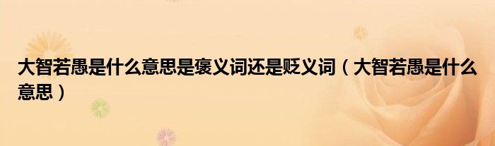 关于大智若愚是什么意思是褒义词还是贬义词,大智若愚是什么意思这个很多人还不知道,今天菲菲来为大家解答以上的问题,现在让我们一起来看看吧!