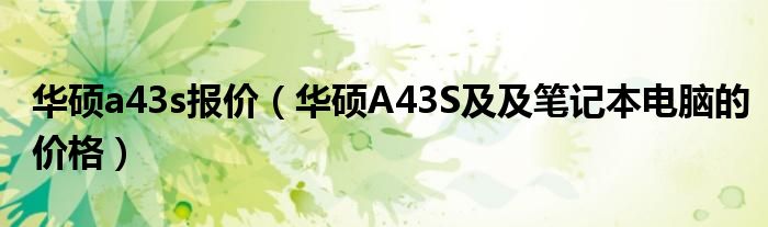 大家好,小常来为大家解答以上问题。华硕a43s报价,华硕A43S及及笔记本电脑的价格很多人还不知道,现在让我们一起来看看吧!