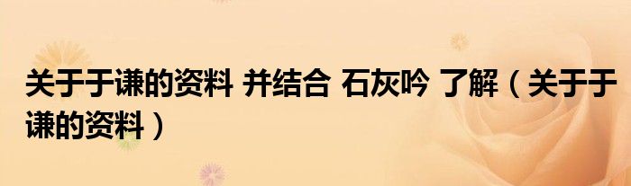 关于关于于谦的资料 并结合 石灰吟 了解,关于于谦的资料这个很多人还不知道,今天菲菲来为大家解答以上的问题,现在让我们一起来看看吧!
