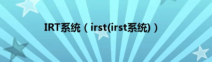 大家好,小常来为大家解答以上问题。IRT系统,irst(irst系统)很多人还不知道,现在让我们一起来看看吧!