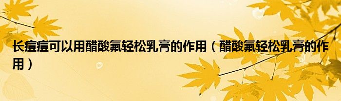 大家好,linda来为大家解答以上的问题。长痘痘可以用醋酸氟轻松乳膏的作用,醋酸氟轻松乳膏的作用很多人还不知道,现在让我们一起来看看吧!