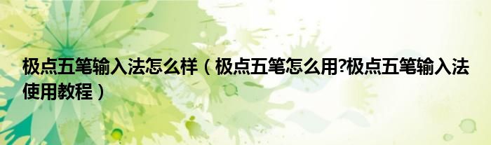 极点五笔使用教程:
