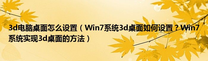 大家好,今天小悦来为大家解答以上问题。3d电脑桌面怎么设置,Win7系统3d桌面如何设置?Win7系统实现3d桌面的方法很多人还不知道,现在让我们一起来看看吧!
