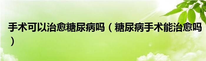 大家好,linda来为大家解答以上的问题。手术可以治愈糖尿病吗,糖尿病手术能治愈吗很多人还不知道,现在让我们一起来看看吧!