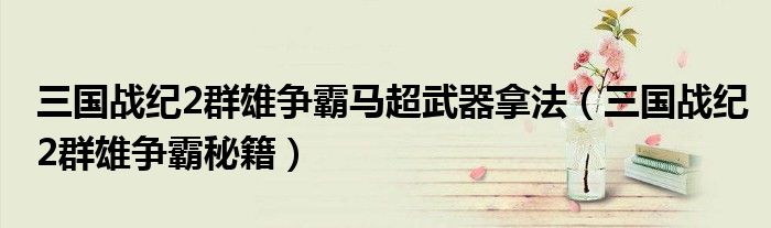 大家好,雨雨来为大家解答以上问题,三国战纪2群雄争霸马超武器拿法,三国战纪2群雄争霸秘籍很多人还不知道,现在让我们一起来看看吧!