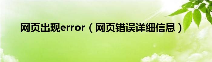 大家好,雨雨来为大家解答以上问题,网页出现error,网页错误详细信息很多人还不知道,现在让我们一起来看看吧!