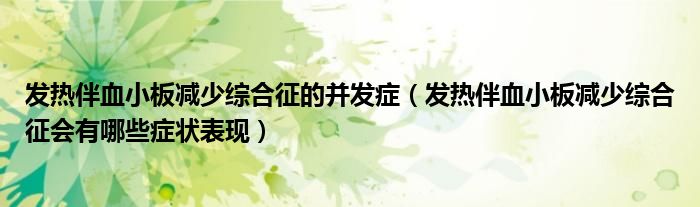 大家好,linda来为大家解答以上的问题。发热伴血小板减少综合征的并发症,发热伴血小板减少综合征会有哪些症状表现很多人还不知道,现在让我们一起来看看吧!
