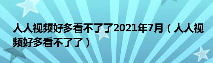 人人视频好多看不了了2021年7月(人人视频好多看不了了)